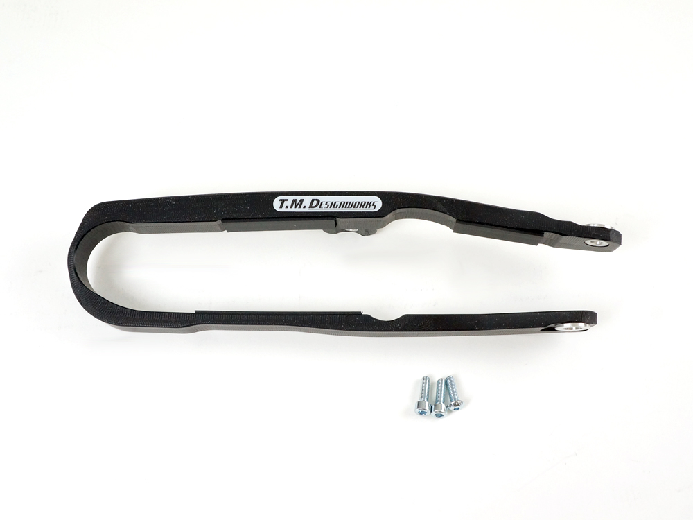 Sehr hochwertige, haltbare Schwingenschleifer vom US Marktführer T.M Designworks. Der Schwingenschleifer besteht aus Teflon, somit ist er um ein Vielfaches haltbarer als Original. Unersetzlich im Enduro und Cross Country Bereich, findet aber auch im Motocross seine Verwendung. Die T.M Designworks Schwingenschleifer werden von vielen Profi- und Werksteams auf der ganzen Welt eingesetzt.