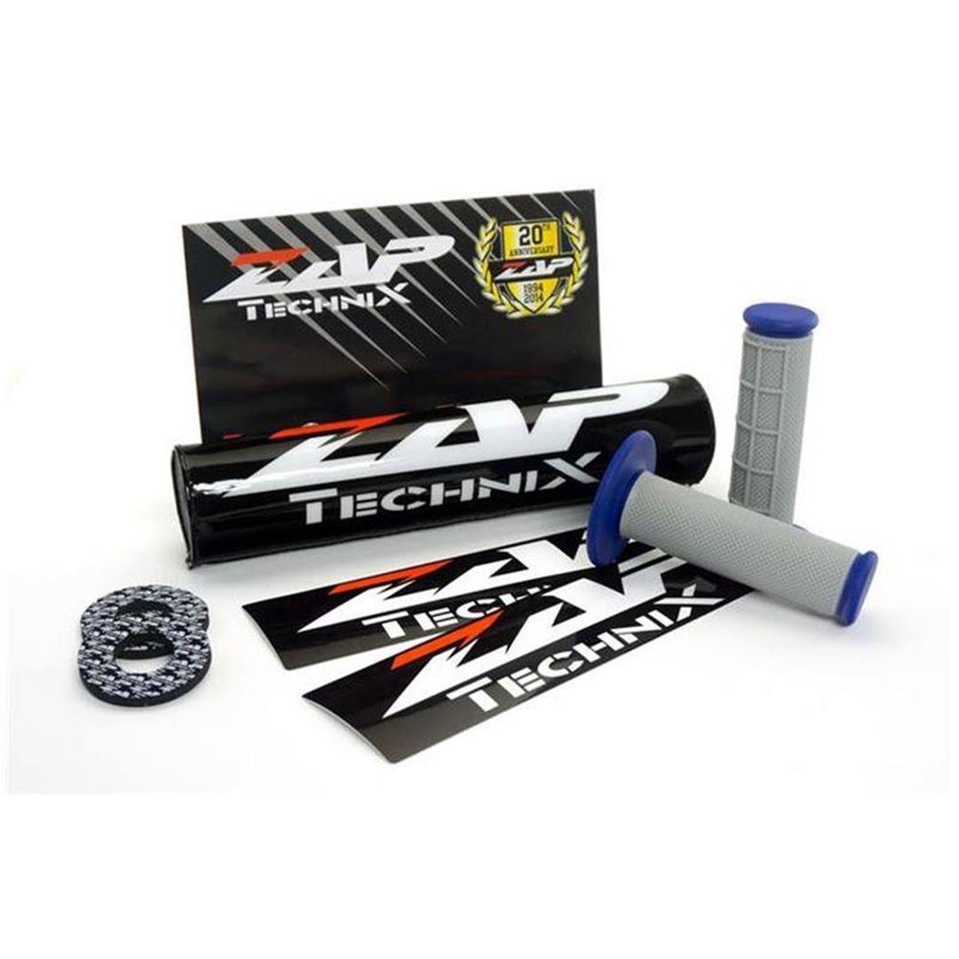 ZAP Set – Lenkerpolster schwarz + 2 Sticker + MX-Griffe Grau/Blau + Donuts