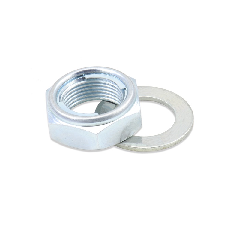 Selbst sichernde Achsmutter mit Unterlegscheibe als original Ersatz oder zum Austausch der lästigen Kronenmutter.