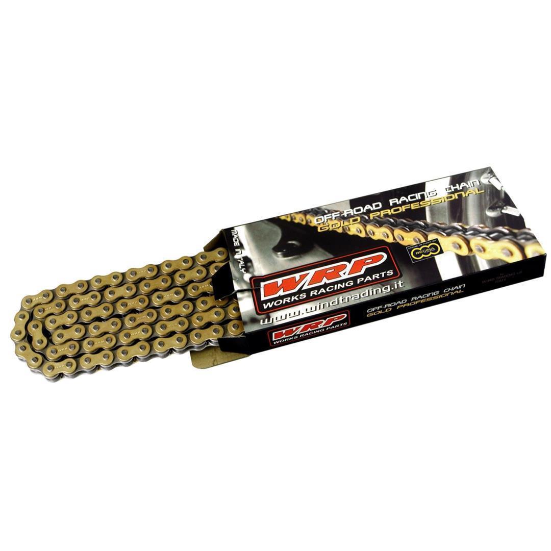 WRP/REGINA 428 PMX – PROFESSIONELLE PERFORMANCE Für Motocross – Enduro – Supermoto Diese NICHT-versiegelte Hochqualitätskette wird speziell für den Einsatz im professionellen Offroad Bereich hergestellt. Durch ihre verchromten Bolzen und vernieteten Buchsen ist ein Abknicken oder Blockieren der PMX-KETTE praktisch ausgeschlossen. Die goldfarbenen Laschen verleihen der PRO MX eine besonders ansprechende Optik. EIGENSCHAFTEN: Gold/Gold nicht abgedichtet Glieder: 130 Teilung: 420 Zugfestigkeit: 21.000 N MADE BY REGINA