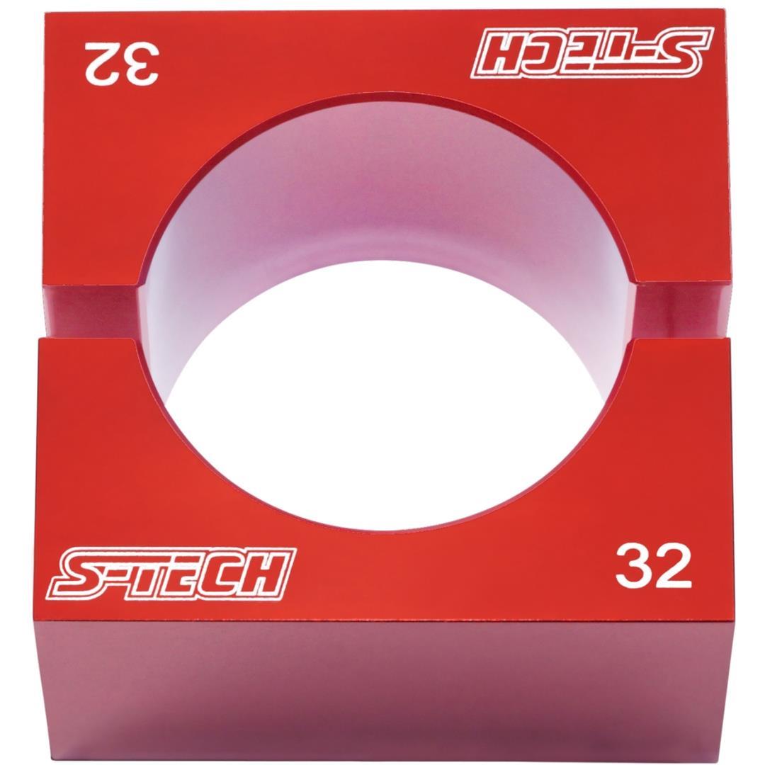 Klemmbacken zum Spannen von Gabel-Innenrohren, Cartridge-Rohren und sonstigen Rundprofilen im Fahrwerksbereich. Bei einer Einspannung von Rohrprofilen ohne passgenaue Klemmbacken sind sehr hohe Klemmkräfte erforderlich um die Rohre gegen Verdehen zu sichern, was wiederum zu einer dauerhaften Verformung der Rohre führen kann. Die S-TECH Klemmbacken ermöglichen hingegen eine sehr schonende Klemmung der Kompenten. Die Klemmbacken sind mit geringen Fertigungstoleranzen CNC-gefräst. In Verbindung mit der großzügig dimensionierten Spannfläche ergibt sich ein sehr hoher Reibschluss bereits bei geringen Spannkräften durch den Schraubstock. Vorteile der S-TECH Klemmbacken: – Geringe Klemmkraft erforderlich infolge optimalem Reibschluss. – Schonende Klemmung der Rohre. Eine dauerhafte Verformung ist praktisch ausgeschlossen. – Erlaubt die Einspannung der Rohre in beliebiger Lage im Schraubstock (senkrecht, waagerecht oder in beliebiger Neigung).