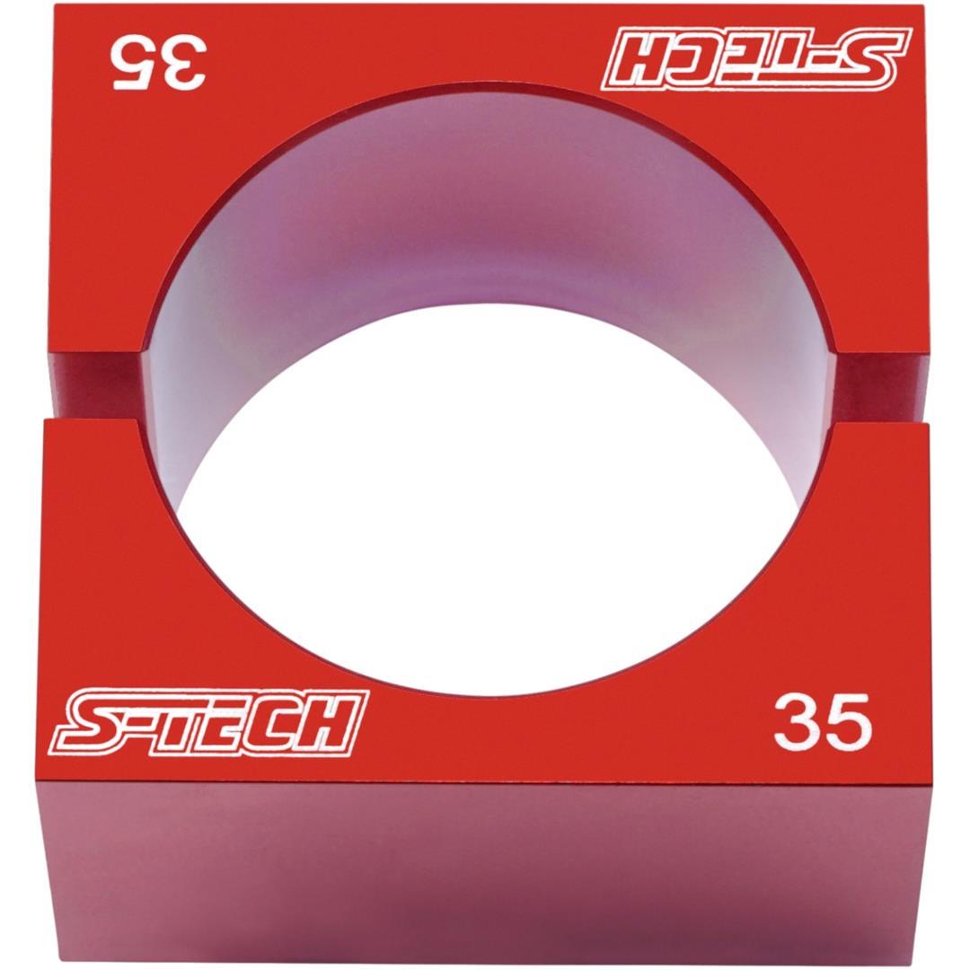 Klemmbacken zum Spannen von Gabel-Innenrohren, Cartridge-Rohren und sonstigen Rundprofilen im Fahrwerksbereich. Bei einer Einspannung von Rohrprofilen ohne passgenaue Klemmbacken sind sehr hohe Klemmkräfte erforderlich um die Rohre gegen Verdehen zu sichern, was wiederum zu einer dauerhaften Verformung der Rohre führen kann. Die S-TECH Klemmbacken ermöglichen hingegen eine sehr schonende Klemmung der Kompenten. Die Klemmbacken sind mit geringen Fertigungstoleranzen CNC-gefräst. In Verbindung mit der großzügig dimensionierten Spannfläche ergibt sich ein sehr hoher Reibschluss bereits bei geringen Spannkräften durch den Schraubstock. Vorteile der S-TECH Klemmbacken: – Geringe Klemmkraft erforderlich infolge optimalem Reibschluss. – Schonende Klemmung der Rohre. Eine dauerhafte Verformung ist praktisch ausgeschlossen. – Erlaubt die Einspannung der Rohre in beliebiger Lage im Schraubstock (senkrecht, waagerecht oder in beliebiger Neigung).