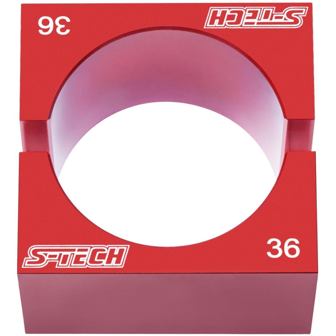 Klemmbacken zum Spannen von Gabel-Innenrohren, Cartridge-Rohren und sonstigen Rundprofilen im Fahrwerksbereich. Bei einer Einspannung von Rohrprofilen ohne passgenaue Klemmbacken sind sehr hohe Klemmkräfte erforderlich um die Rohre gegen Verdehen zu sichern, was wiederum zu einer dauerhaften Verformung der Rohre führen kann. Die S-TECH Klemmbacken ermöglichen hingegen eine sehr schonende Klemmung der Kompenten. Die Klemmbacken sind mit geringen Fertigungstoleranzen CNC-gefräst. In Verbindung mit der großzügig dimensionierten Spannfläche ergibt sich ein sehr hoher Reibschluss bereits bei geringen Spannkräften durch den Schraubstock. Vorteile der S-TECH Klemmbacken: – Geringe Klemmkraft erforderlich infolge optimalem Reibschluss. – Schonende Klemmung der Rohre. Eine dauerhafte Verformung ist praktisch ausgeschlossen. – Erlaubt die Einspannung der Rohre in beliebiger Lage im Schraubstock (senkrecht, waagerecht oder in beliebiger Neigung).