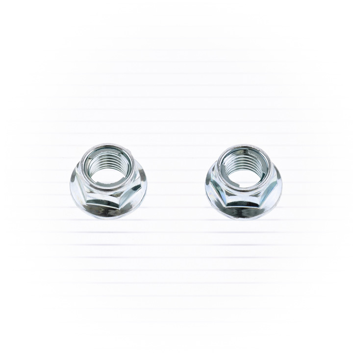 Fuji-Lock-Flanschmuttern bestehen aus verzinktem Stahl der Güteklasse 8.8 mit einem Sicherungseinsatz aus Edelstahl. Ungezahnt. Verkauft in Beuteln mit 10 Stück. Nicht geeignet für Ritzelanwendungen.