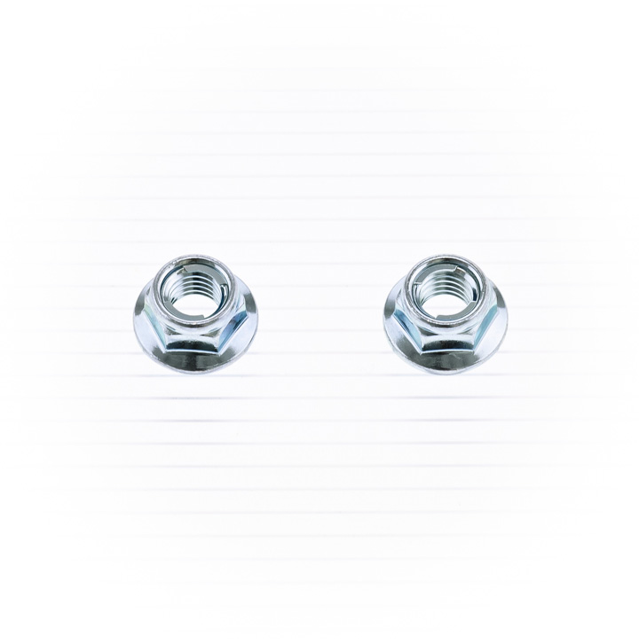 Fuji-Lock-Flanschmuttern bestehen aus verzinktem Stahl der Güteklasse 8.8 mit einem Sicherungseinsatz aus Edelstahl. Ungezahnt. Verkauft in Beuteln mit 10 Stück. Nicht geeignet für Ritzelanwendungen.