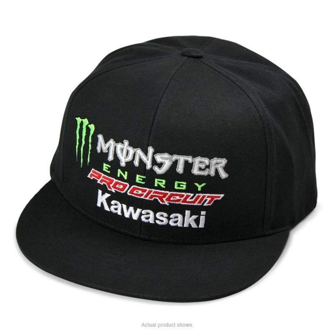 Our popular Team Hat design has been recreated onto a new snapback hat that will have you looking good at the track or with friends for a night out on the town. The Team Hat features iconic Monster Energy, Pro Circuit and Kawasaki logos embroidered on the front and a Monster Energy claw embroidered on the back. An essential accessory for any moto fan. Grab a snapback and show your support for the Monster Energy/Pro Circuit/Kawasaki team.
