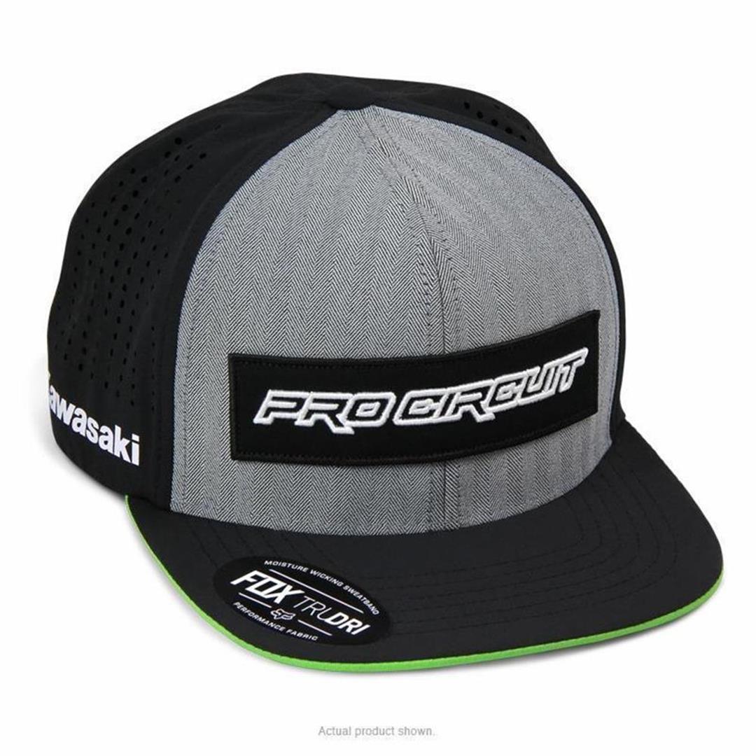 The Tech snapback hat is a result of a Pro Circuit and Fox collaboration that will be sure to please the hardcore moto fan. This hat features iconic Monster Energy, Pro Circuit, Kawasaki and Fox logo graphics as well as a snap closure system in the back for a perfect fit. TRUDRI fabric is also featured that will keep you sweat-free along with perforated panels to help keep you cool.