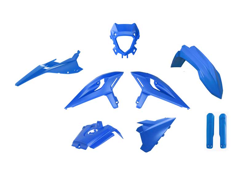 Lieferumfang: Lampenmaske, vorderer und hinterer Kotflügel, Seitenteile rechts und links, Luftfilterabdeckung, Gabelschützer und Tankabdeckung