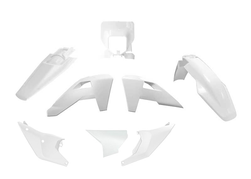 Komplett Kit Bestehend aus Kotflügel vorn & hinten, Kühler-Spoiler, Airboxabdeckung links, Nummertafeln rechts + links, Lampenmaske und Gabelschützer.