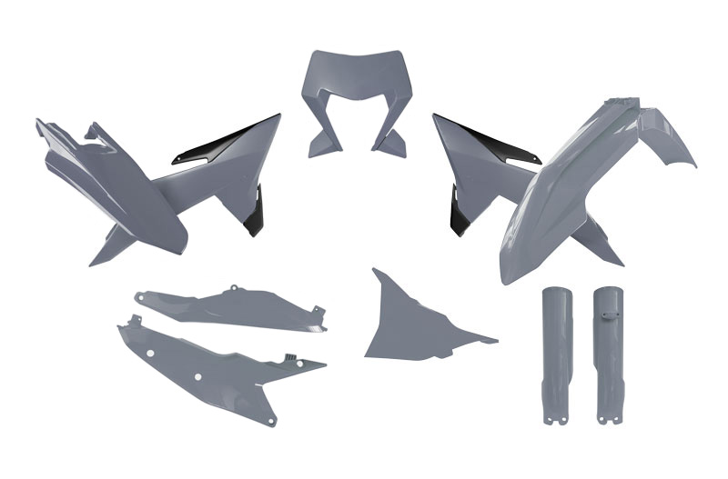 Enthalten sind Kotflügel vorne und hinten, Lampenmaske, Kühlerspoiler, Seitenteile, Gabelprotektoren und Luftfilter-Abdeckung.