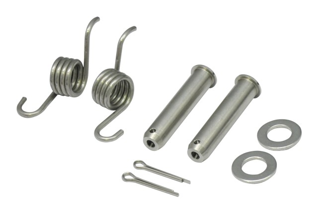 FEDER UND BOLZEN KIT FÜR FUßRASTEN – Ideal wenn die Federkraft nachlässt und die Fußrasten sehr leicht nach oben klappen. – Geeignet für OEM und Zubehör Fußrasten – Lieferumfang: Bolzen, Federn, Splinte & Scheiben