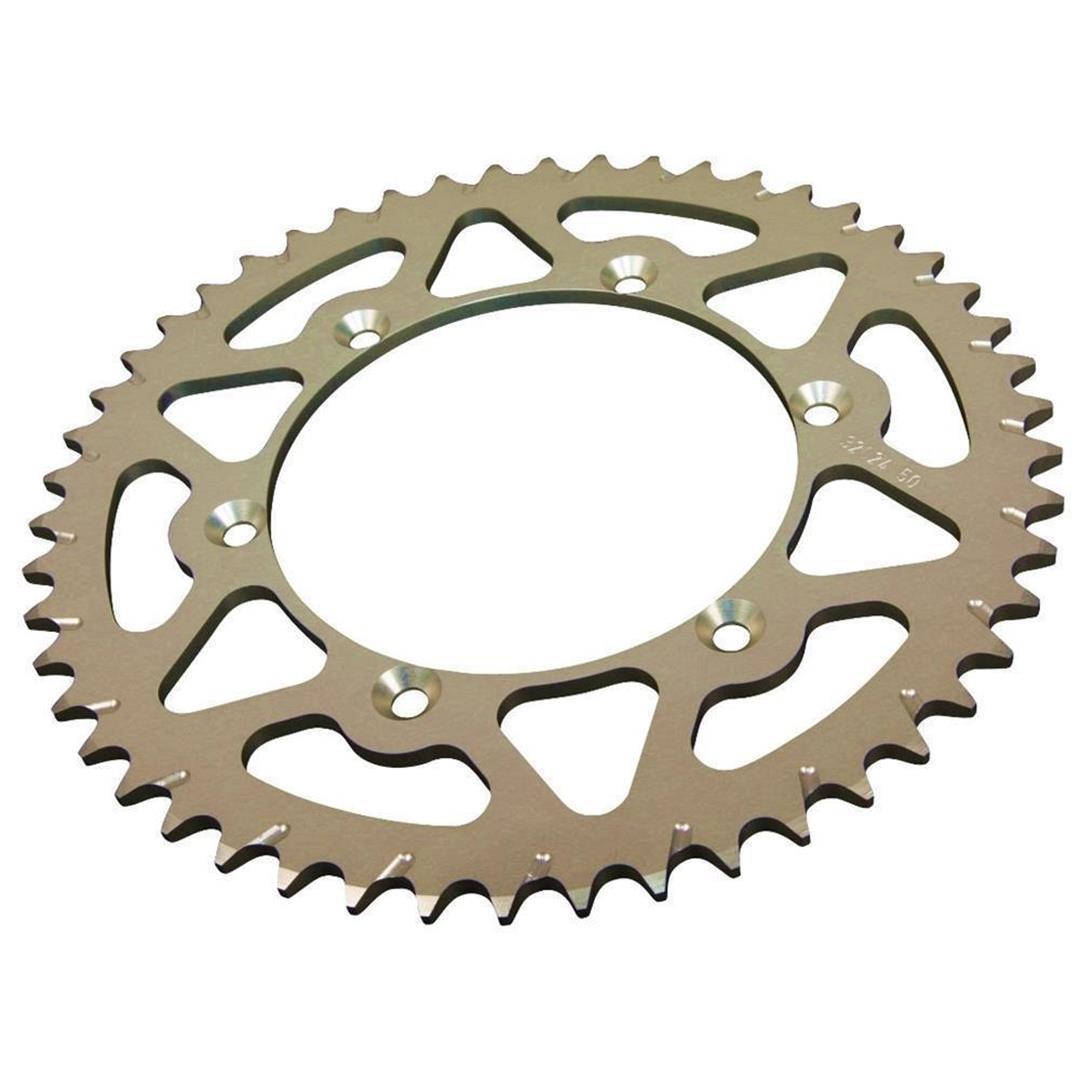ESJOT Alu-Kettenrad ESJOT ulratleichte Aluminium-Kettenräder wurden speziell für die harten Einsatzbedingungen im Motocross und Enduro entwickelt. Gegenüber herkömmlichen Stahlkettenrädern bringt ein ESJOT Alu-Kettenrad eine Gewichtsersparnis von über 60%. Die Verwendung von sehr hochwertigem 7075 T6 Aluminium sowie die extrem geringen Fertigungstoleranzen sorgen hierbei für eine außerordentlich lange Haltbarkeit. ESJOT Kettenräder zählen zu den besten Kettenrädern weltweit. Eigenschaften: Über 60 % leichter als ein herkömmliches Stahl-Kettenrad. Gewicht ca. 300-400 g (je nach Modell) Präzisions-CNC-gefertigt Plan- und Rundlaufgenauigkeit kleiner 0,1 mm aus hochwertigem und hochfestem 7075 T6 Aluminium speziell oberflächenbehandelt Made in Germany, Made by ESJOT (OEM-Hersteller für namhafte europäische Motorradhersteller)