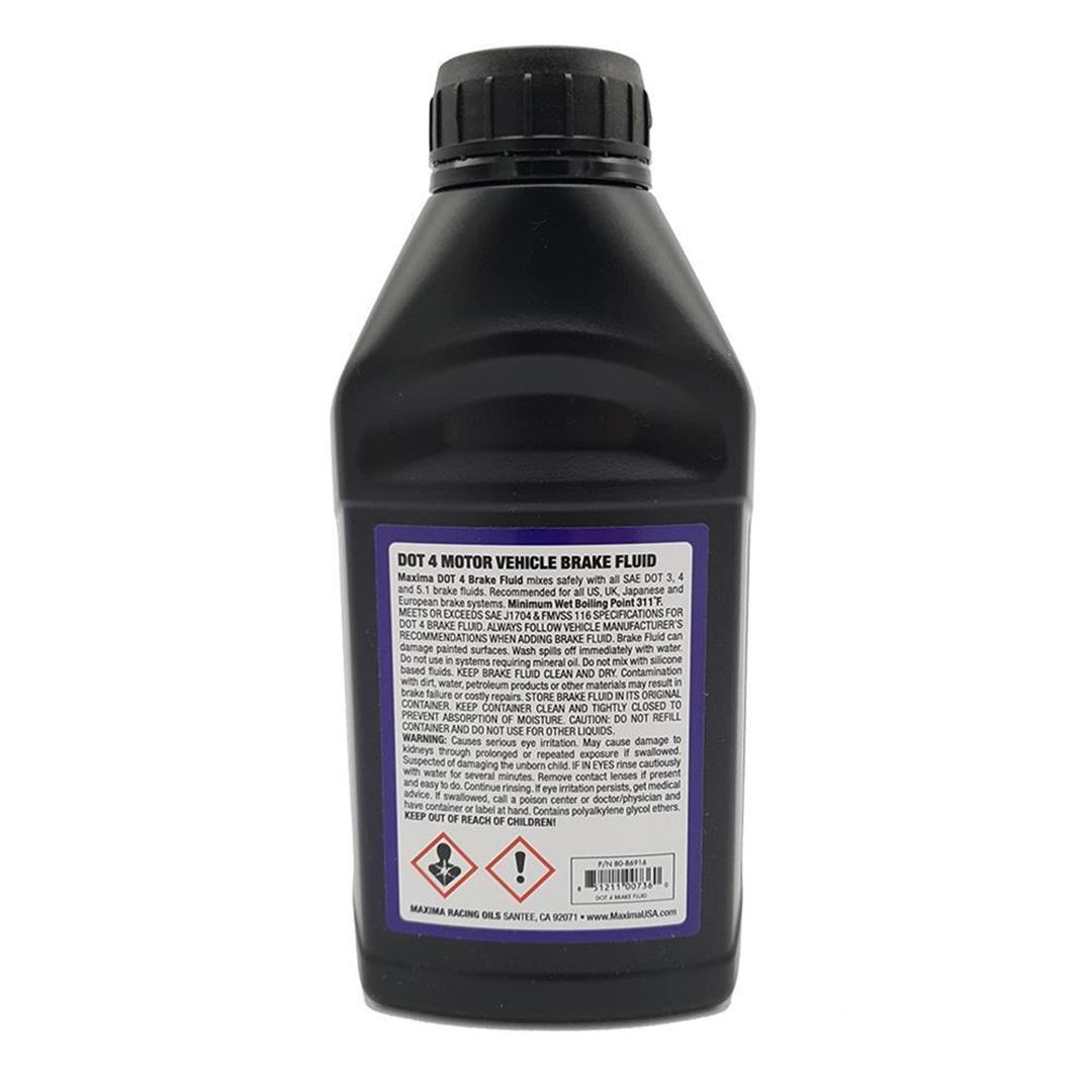 RACING BRAKE FLUID – Bremsflüssigkeit DOT 4 Racing Maxima’s hydraulische Brems- und Kupplungsflüssigkeit – DOT 4 Standard – erfüllt und übertrifft alle Anforderungen der Motorradhersteller für glykolbasierende Flüssigkeiten. Es schützt hervorragend gegen Feuchtigkeitskontamination. Mit anderen DOT 4 Bremsflüssigkeiten mischbar. Eigenschaften: Übertrifft die derzeitigen SAE J1703, J1S K2233 und U.S. und FMVSS116 DOT 4 Spezifikationen Empfohlen für alle U.S., UK, Japanischen- und Europäischen Motorräder Anti-Verdampfung Formel Mischbar mit anderen DOT 4 Bremsflüssigkeiten Anwendung: Zum Gebrauch in allen hydraulischen Kupplungs- und Bremssystemen Inhalt: 500 ml