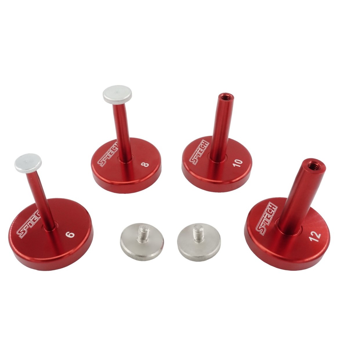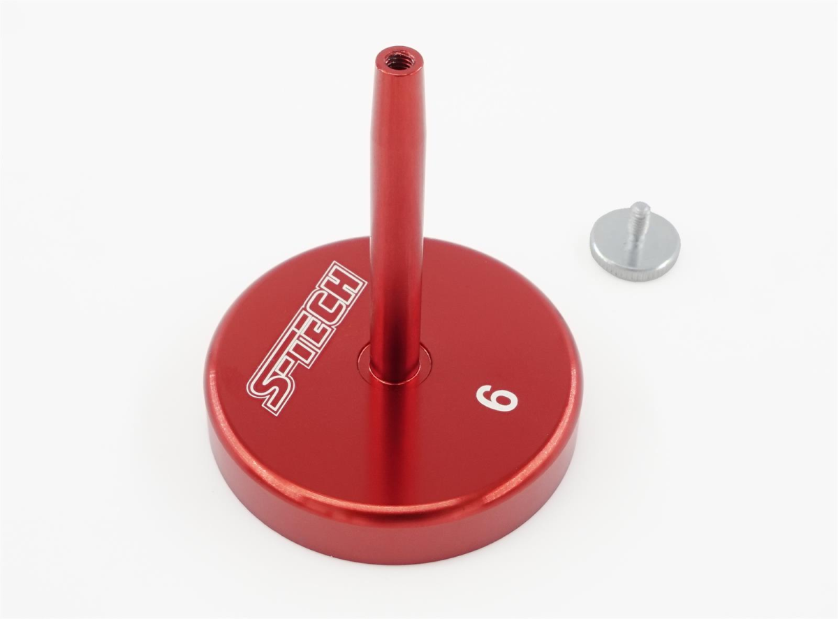 S-TECH Shimstackhalter Der perfekte Helfer für jede Fahrwerkswerkstatt! Der S-TECH Shimstackhalter ermöglicht es dir, die Shimsettings der zerlegten Fahrwerkskomponenten schnell und einfach aufzustecken und zu verstauen ohne das Risiko, das Shims in ihrer Reihenfolge verrutschen. Der integrierte Magnethalter ermöglicht das Befestigen an allen ferromagnetischen Flächen und garantiert einen stabilen Halt des Tools bei der Verstauung. Die mitgelieferte Rändelschraube hilft beim fixieren des Stacks während der Reinigung oder zum Lagern, falls die Komponenten über einen Zeitraum zerlegt bleiben. Der Shimstackhalter ist in den gängigen Durchmessern 6,8,10 + 12mm verfügbar und wird immer mit passender Verschlussschraube geliefert.